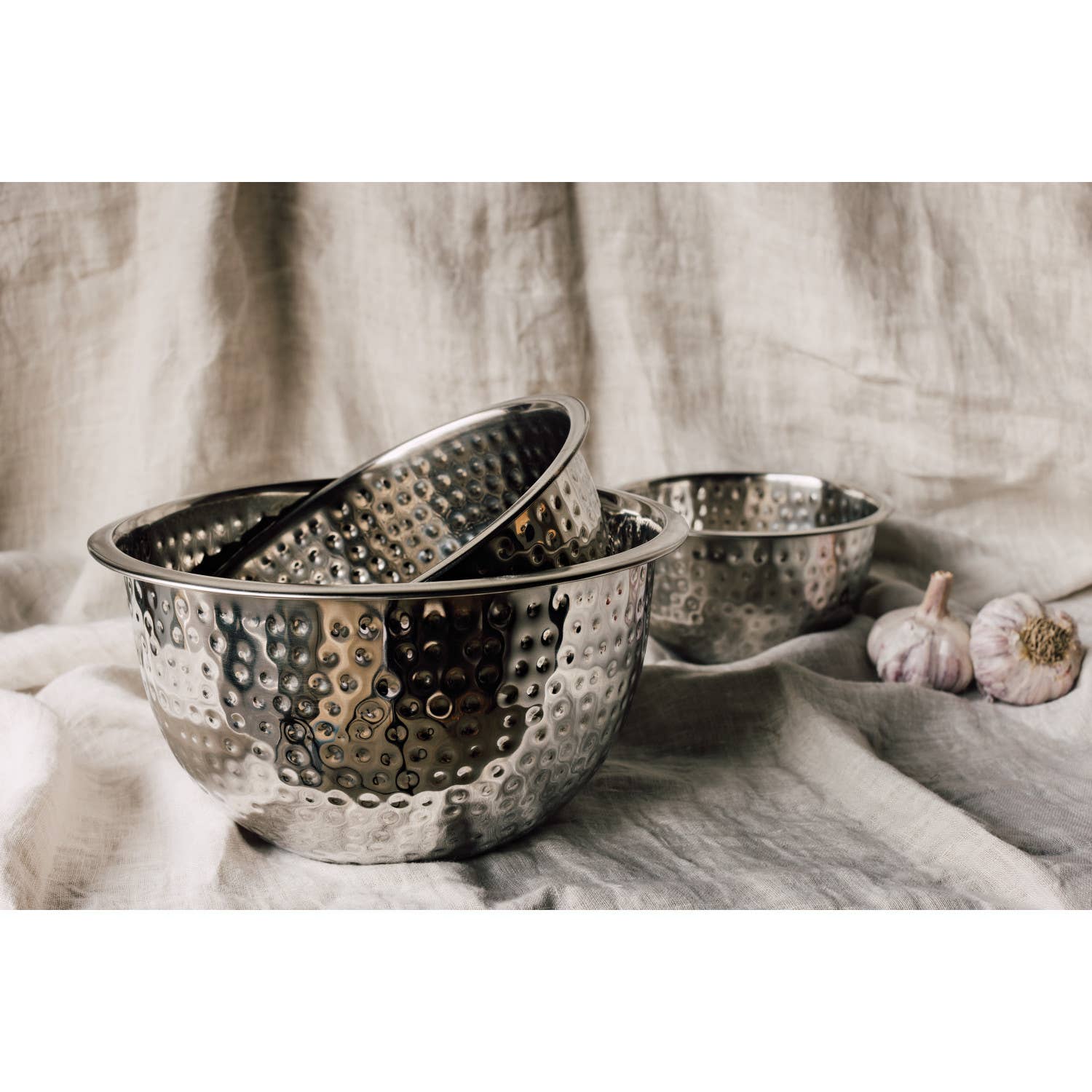 The hammered effect of this bowl adds to its timeless appeal. It does double-duty in the kitchen as a durable, everyday item that you will want to leave on display.