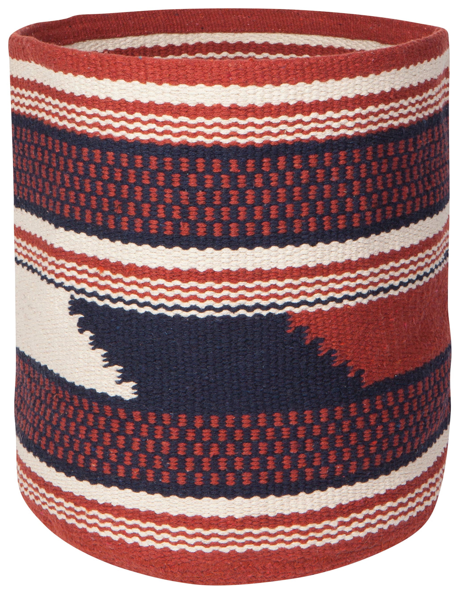 Grounded with texture, neutral tones, and geometric patterns, this basket can be used for odds-and-ends storage, for movie night blankets or to display plants in style. Due to the handmade nature of this product, there may be slight variations in color, texture, and finish to each unique, perfectly imperfect item.